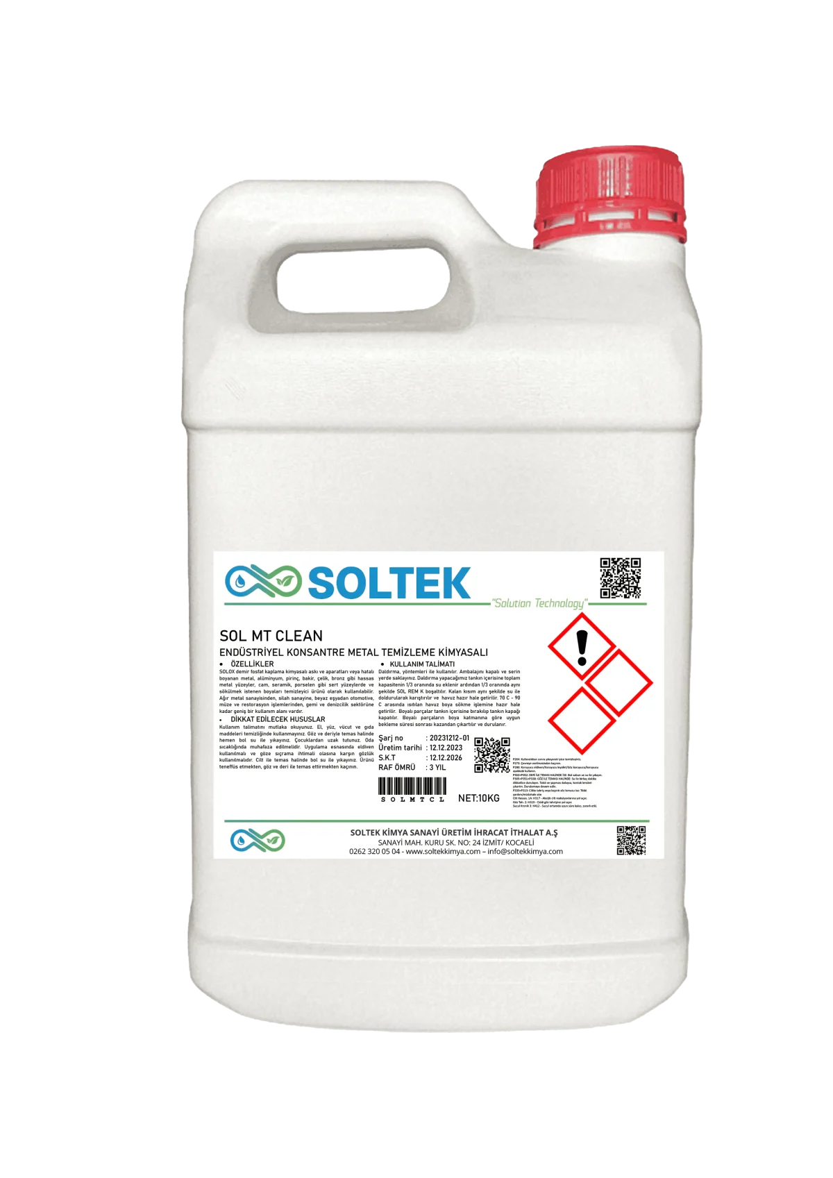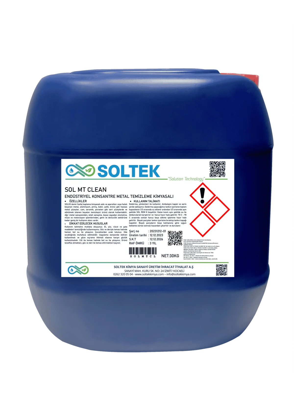Solex MT Clean; metal yüzeylerde zamanla biriken pas, kir ve yağ gibi tortulların etkili bir şekilde temizlenmesini sağlayan bir metal yağ alma kimyasalıdır. Özellikle konsantre ve su bazlı yapısıyla çeşitli metal yüzey işlemlerinde etkili bir yağ temizleyici olarak kullanılmaktadır.