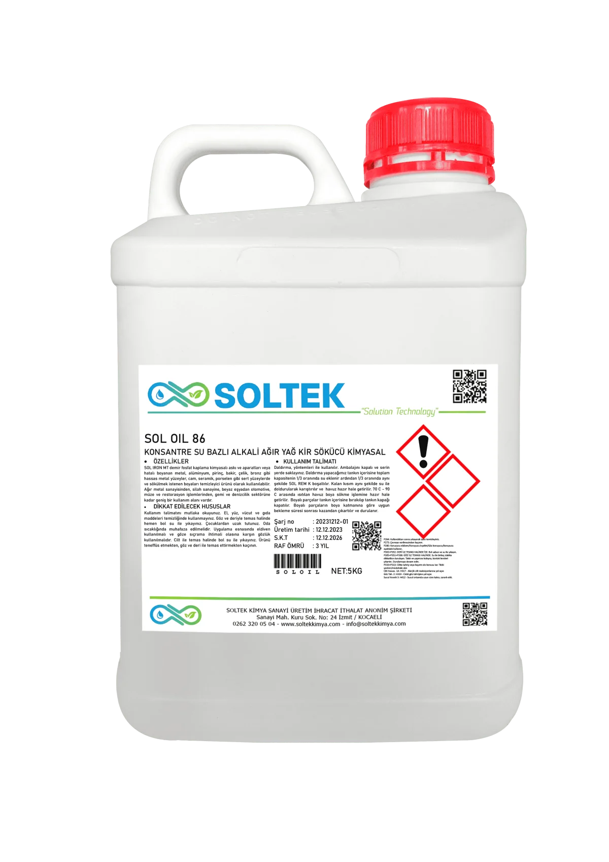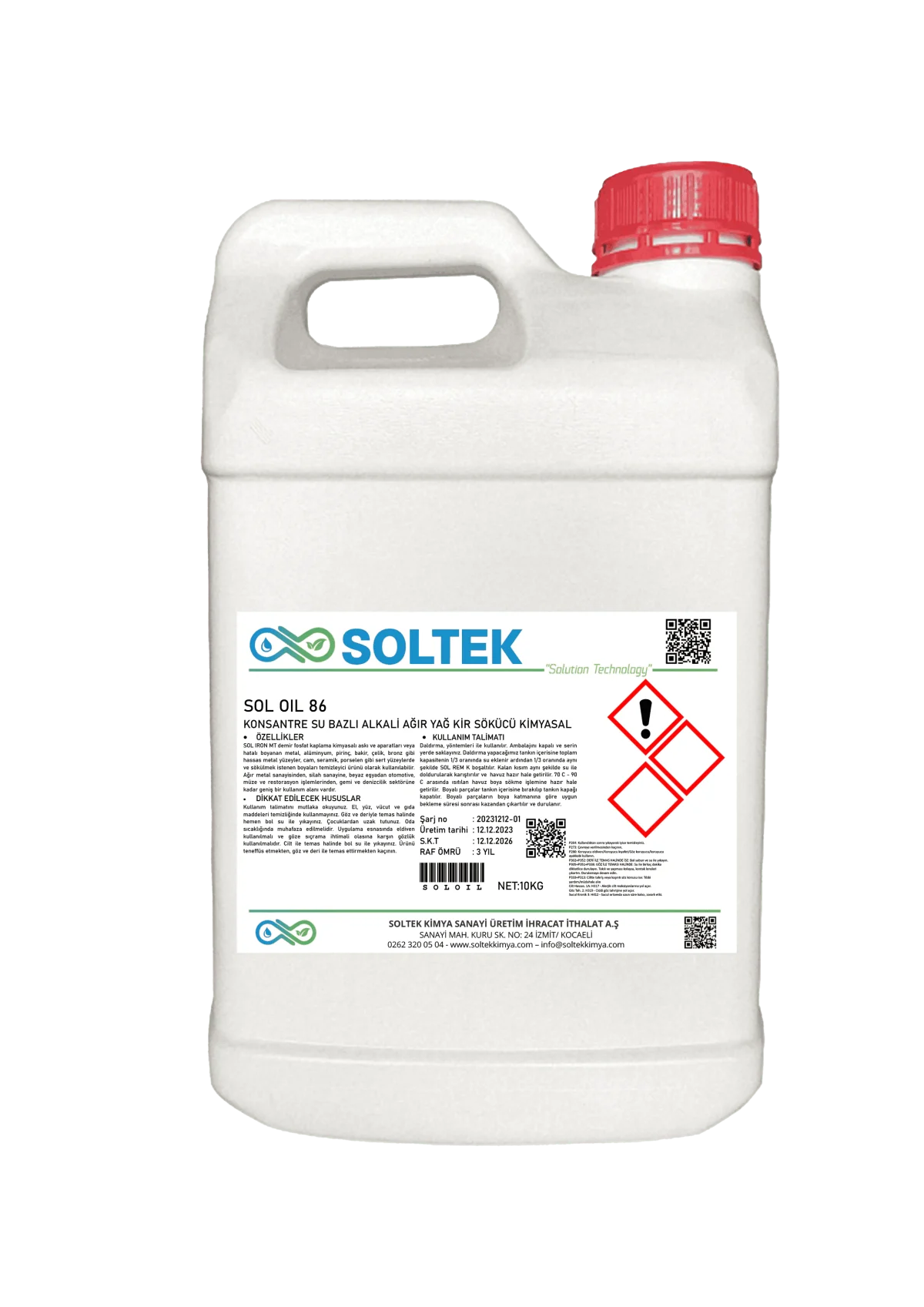 Sol Oil 086, su bazlı, konsantre bir sıcak yağ alma kimyasalıdır. Çeşitli metal yüzeylerde (demir, çelik, alüminyum, bakır vb.) biriken yağ ve kirleri etkili bir şekilde temizlemek için kullanılır. Özellikle fosfatlama ve kaplama işlemleri öncesi yüzey temizliğinde önemli bir rol oynar.