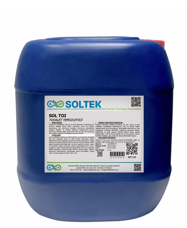 Tuvalet temizleyici jel tuvalet ve klozetlerin temizlenmesinde derinlemesine etkilere sahiptir. Tuvalet temizleyici jel ürünümüz Sol TOI tuvaletin hijyenik ve temiz tutulmasını sağlar. Sol TOI tuvaleti temizlerken aynı zamanda pas, kireç, kir ve bakterileri de yok etmeye yardımcı olur. Güçlü formülü ile öne çıkan kimyasalımız tuvaletleri uzun süre ferah ve temiz tutmanıza yardımcı olur. Tüm mikropları tamamen temizleyerek hijyenik ortam sunar. Mikrop tutan leke birikimlerinden kireç birikintilerine kadar çok geniş alanda etkilidir.